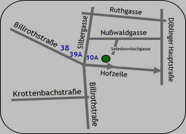die Stufen gegenüber der Döblinger Pfarrkirche links hinunter nehmen.